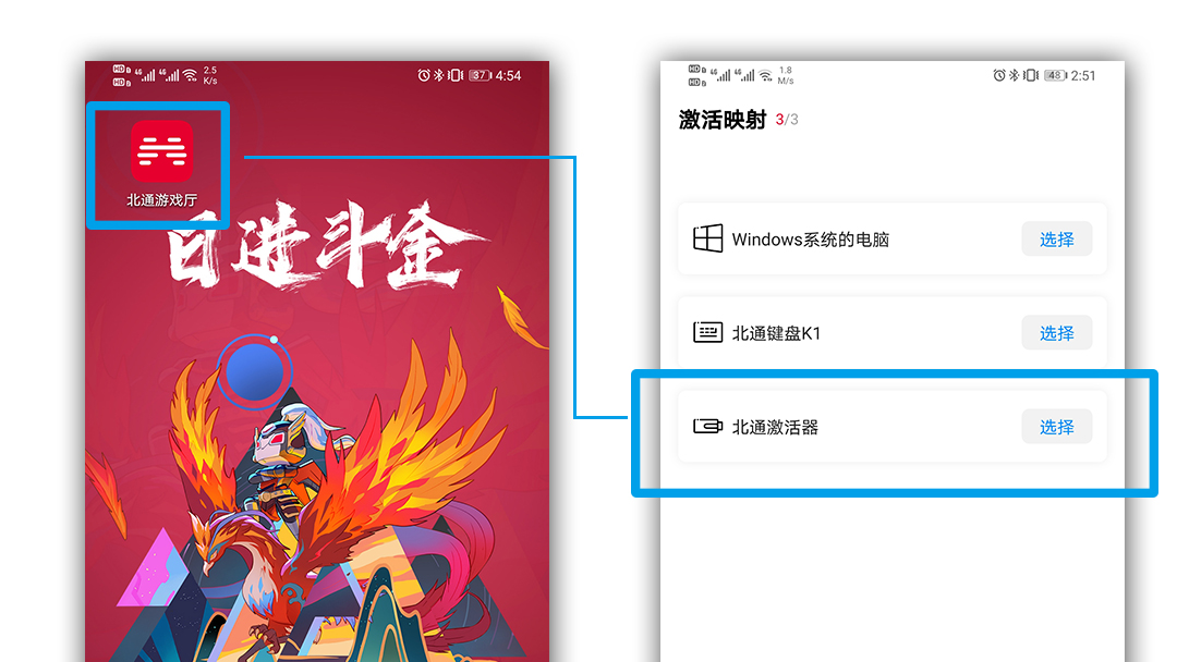 1、打开北通游戏厅app,在激活映射界面,选择对应的激活方式激活。