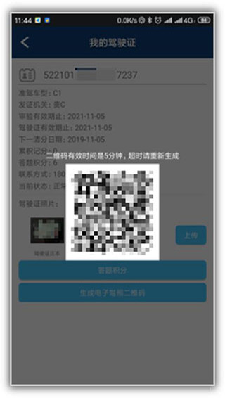 11、上传成功后,即可点击“生成电子驾照二维码”。