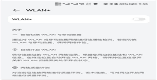 进入[设置】->[WLAN]->[更多WLAN设置]->[WLAN+],关闭WLAN+