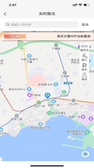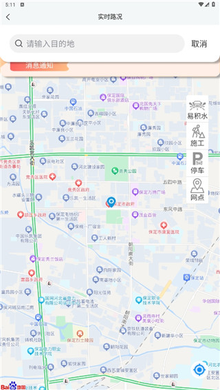 1、实时路况可以查看市区内的各种道路开启,如积水,施工,停车等