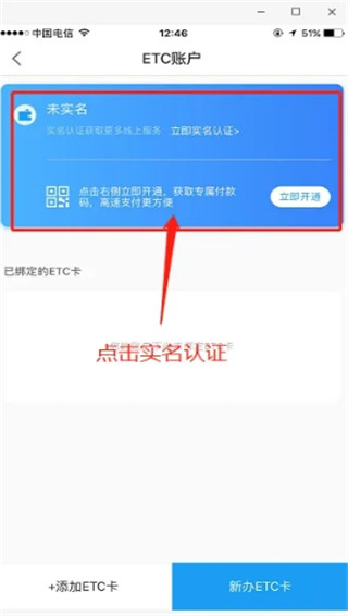 3、在ETC账户页面进行实名认证,可直接使用本人ETC卡进行认证;