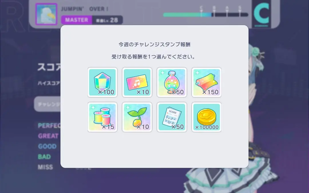 CHALLENGE LIVE(类似于每日签到?)【每天只能打一次,每周全勤能获得一个大奖励】解锁条件为等级达到5级