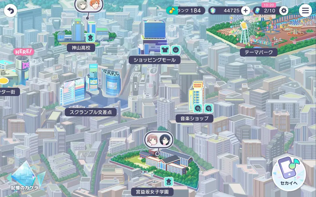 这是现实世界的地图,其中“宮益坂女子学園”和“神山高校”是买花的地方(30级解锁)提升综合力