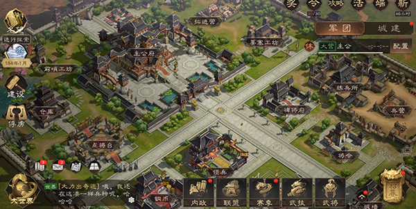 1、玩家进入三国群英传鸿鹄霸业游戏后会到自己的主城内,需要不断建设自己的主城,发展壮大。