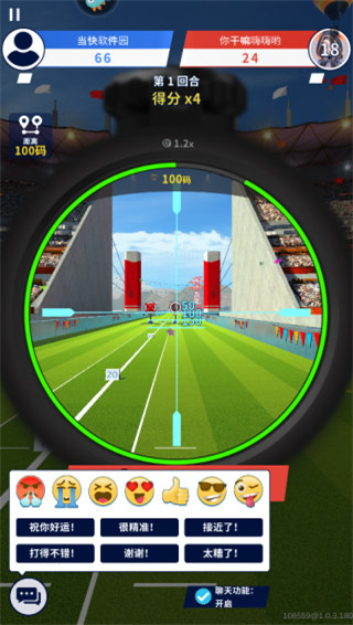 5、根据距离选择对应的码数松手进行射击,点击下方的言语可以发送图案或是短句