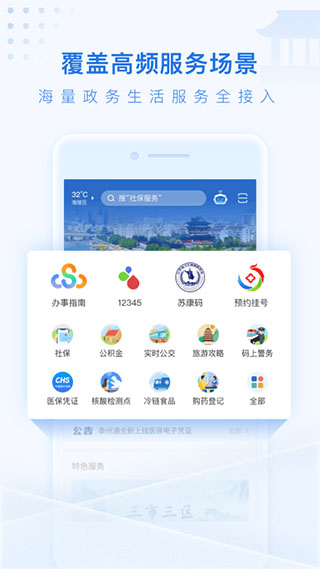 泰州通app是一款为泰州市民打造的政务服务软件,其中有泰州市公安局,泰州市人力资源保障局,泰州市公积金中心等12大政府部门入驻,用户可以足不出户办理各种事项。通过使用数字身份证二维码,用户可以随意畅通全城,而且该二维码有扫码乘车,电子医保,电子社保,图书借阅等服务,能够满足用户的其他需求