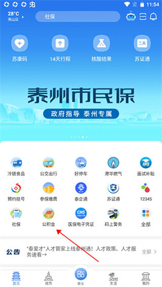 1、打开软件进入首页,居民点击公积金,进入管理系统