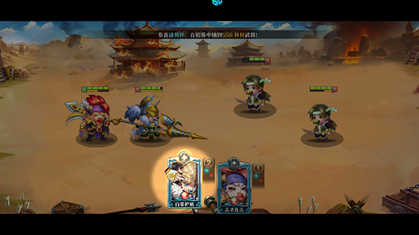 3、阵营克制系统:武将之间存在阵营克制关系,根据阵营克制关系上阵对应武将,轻松击败敌人,通过关卡。
