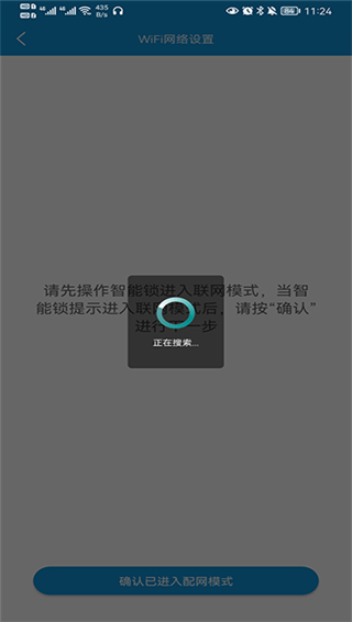 四、按照提示将智能锁进入联网模式后,待搜索设备后连接设备就可以了(门锁需要与手机连接同一个WiFi,否则手机会搜索不到设备)