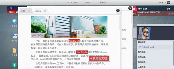 2. 点开邮箱的新闻链接,收集信息收集目标人物姓名【Kapil Modi】,前妻姓名【lisa Snyder】 。