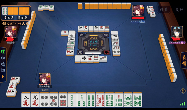 5、对战界面与雀龙门、世嘉mj没有太大差别。麻将牌字体沿用传统的日本麻将字体。轮到自己出牌时点击要打出的牌即可完成切牌动作。在可以吃、碰、杠的情况下点击自己牌上方的字即可完成动作。当然,没有“役”是不能胡的。与主流日本麻将规则统一步调,采用“食替×”的规则,不允许玩家“食替”。所谓的“食替”,即用两面搭子吃牌后,即刻打出可与两面搭子匹配为一组顺子的牌。在“食替×”这一规则下,45万吃3万后是不可以打出3万或6万的。
