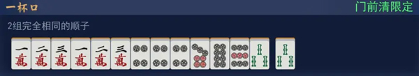 场风和自风刻子役就不说了。咱们来说一些别的比较实用的,首先是一杯口,112233的牌型就可以,类似扑克里的连对,不过注意是门前清限定的,要靠自己摸。
