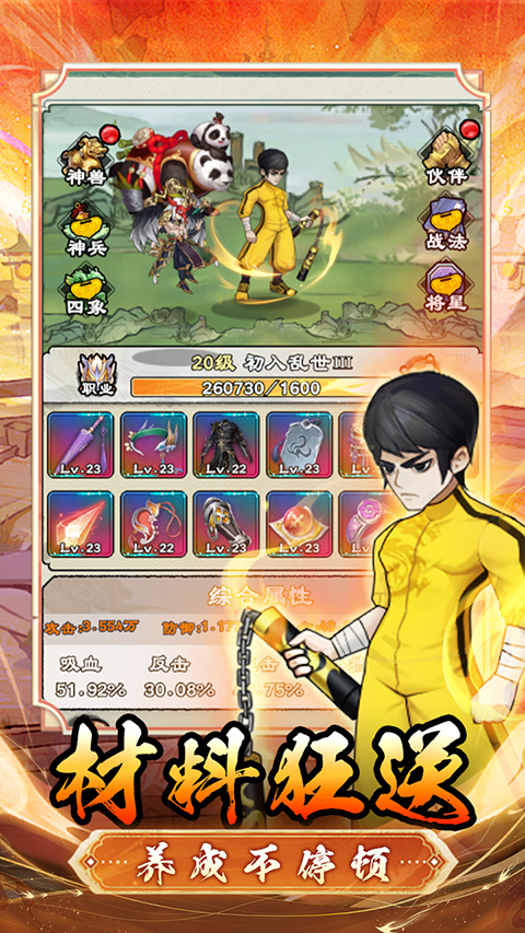 5、通过出售装备,可以获得金币奖励,金币可以用来提升武馆等级,增加高级装备刷出的概率。