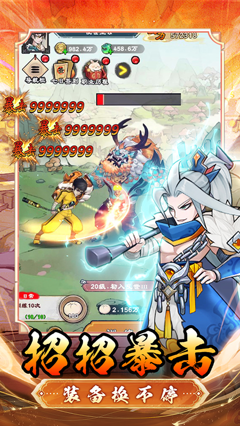 出击吧师兄是一款采用轻松放置玩法的武侠挂机游戏。你将扮演一名初出茅庐的江湖侠士,通过不断的冒险闯荡,一步步成为江湖中的盖世游侠。游戏采用顶尖的画面技术,将壮丽的山川湖海、神秘的洞府秘境完美呈现于眼前。仿佛的剧情任务和跌宕起伏的故事情节,让你仿佛置身于一部武侠小说之中,体验一场场惊心动魄的冒险。