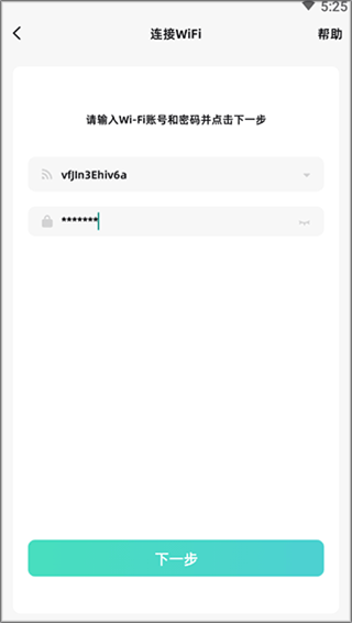 3、输入摄像机要连接的wifi网络名称与密码,进行下一步。