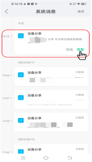 步骤4:被分享者会收到设备分享信息,点击“同意”,完成分享。