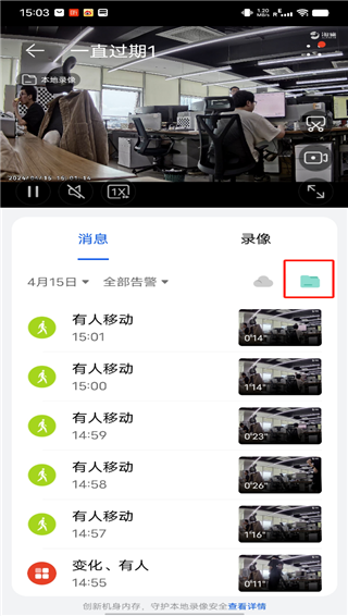 步骤3:点击文件夹图标,查看本地录像告警消息。