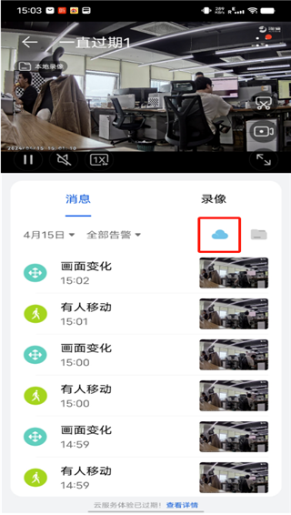 步骤2:点击云朵图标,查看云录像告警消息。