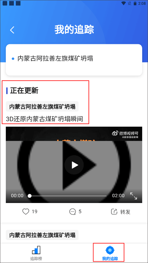 4、如果想查看自己实时追踪的热点新闻后续,可以在【我的追踪】里面看。