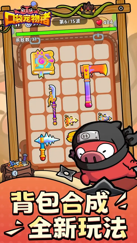1、武器合成系统丰富多样,收集材料合成强大的武器,材料获取方法多种多样,每次合成都是一种全新的体验2、每只宠物猪都有其独特的成长路径,通过喂食、训练和互动来定制它们的发展,玩家们可以体验到多种多样的游戏玩法