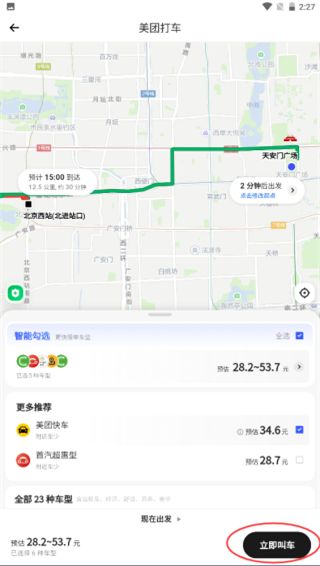 3、等待系统计算好价格之后就可以点击“立即叫车”了