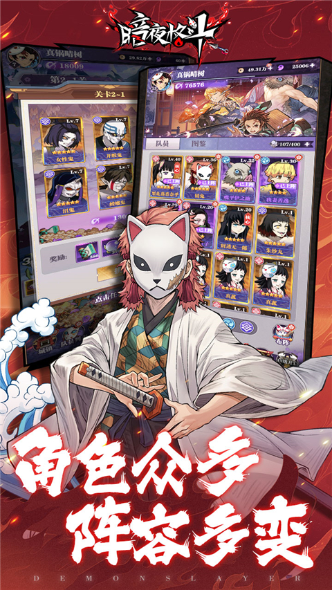 顶级队伍,任你差遣炭治郎、炼狱杏寿郎、蝴蝶香奈惠、猗窝座等等顶级英雄,皆在你的掌控中!