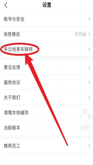 随后,进入设置页面,点击选择“丰云悦享车联网”。