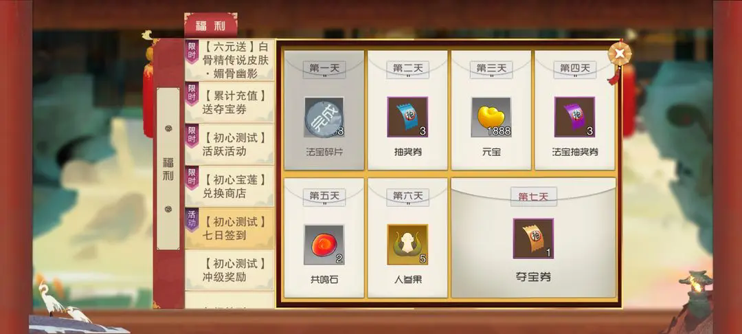 初心测试等级活动快速升级获得大量法宝碎片和元宝,并且可以获得共鸣石,想要快速升级可以到商城特惠里面购买双倍经验卡,优先购买天数的。并且日常任务也是快速升级条件。