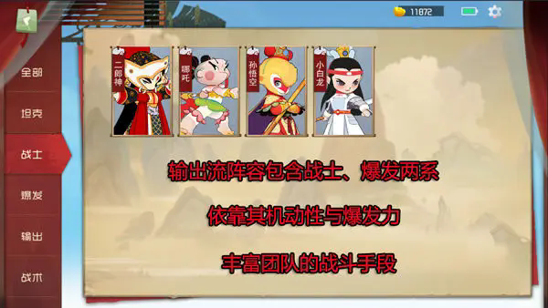 1、战士型英雄得有一名,就像二郎神以及孙悟空他们可以利用位移技来拉扯对手的阵容,通过干扰让我方能够找到突破口;
