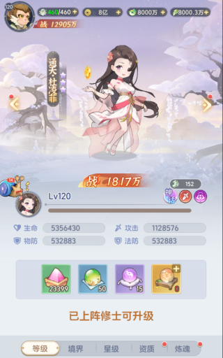 那么如何去提升修士的战力呢?首先可以从培养下手,其主要分为等级、境界、星级、资质、炼魂。天骄们收集所需的资源可以对修士进行升级或者升星。