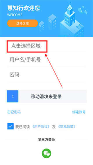 1、在本站下载安装软件,进入登录页,点击“选择区域”。