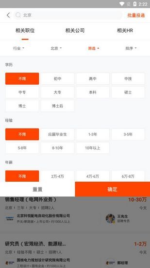 5.当然你还可以通过【筛选】,对岗位的要求继续进行筛选,例如学历要求,年薪等要求