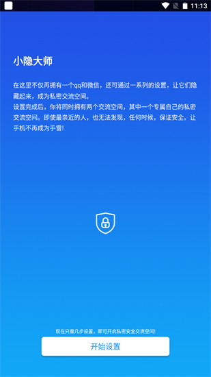 1、进入小隐大师app以后,您可以根据APP的提示,点击“开始设置”