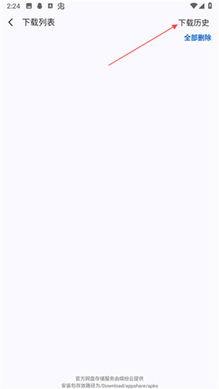 3、这里可以查看下载列表,点击右上角查看下载历史