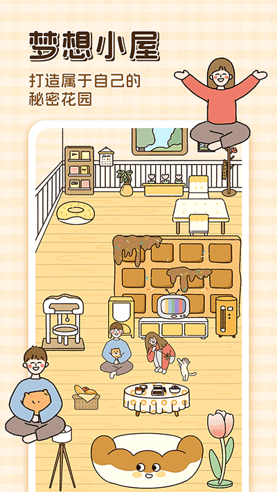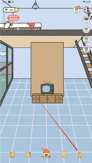 2、小屋--包含场景选择、商店和仓库。单人使用时只有客厅场景,关联后,两人使用时,有客厅和花园两个场景。小可爱们可进入商店,用获得的爱心来购买道具,再去仓库中使用购买的道具。