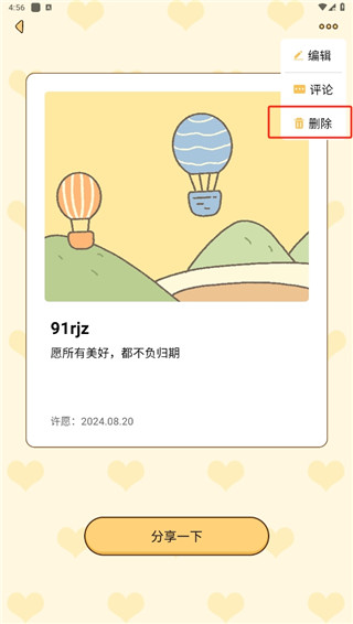 在底部选项中,点击右边的愿望,点击需要删除的愿望。