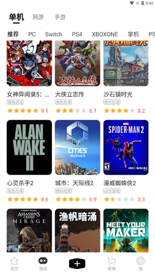 3DMGAME手机版是一款非常受欢迎的游戏平台,这里不仅有着各种各样的主机游戏,还为用户带来了众多手游,并且将它们分成了不同的版块,动作,射击,策略,休闲,冒险,模拟经营,益智解谜,回合制等,用户可以根据自己的喜好在这里选择游戏,也可以直接使用搜索功能,输入游戏名称进行精准查找。同时,软件中还为用户带来了大量的游戏资讯和活动,用户将会快速接收自己关注的一些游戏资讯活动,再也不用自己去寻找相关的内容了。