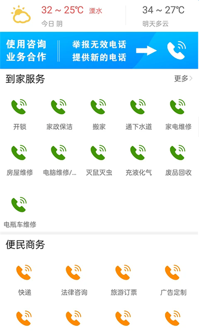 5、点击电话能够拨打各种维修电话、商家服务电话、党政电话等。