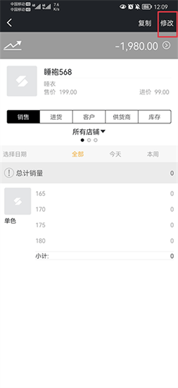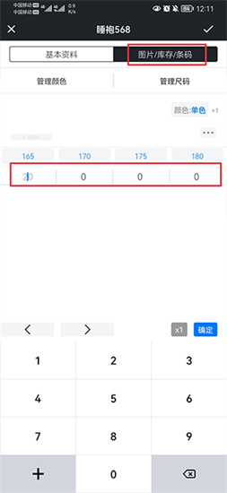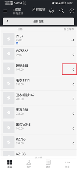 三、在库存界面中的商品尺码下面输入0