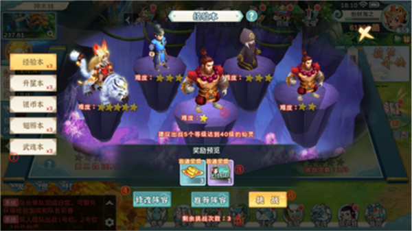 在中间②的位置可以切换副本星级难度,点击其他难度对应的石台即可切换,副本选择的星级越高,难度也就越高,但是相应的奖励也会越高。