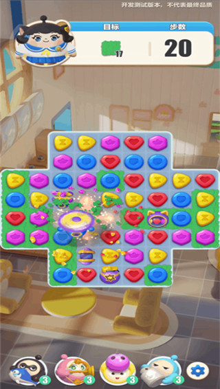 4、游戏采用经典三消玩法,玩家需消除相同的方块;