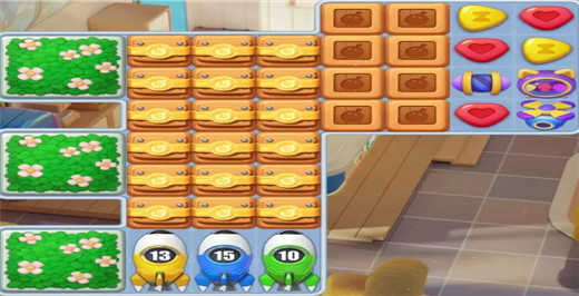 669关可以作为冲刺火箭机制的典型关卡,左侧花圃解锁后上方会掉落仔仔熊存钱罐。难点在于开始的棋盘较小,不过解锁火箭需要的棋子数量不多,并不需要刻意开图,收集棋子时多用道具节省步数即可。利用冲刺火箭消除木箱后便没什么难度,步数也比较富裕,正常通关即可,有“螺旋桨+超级智脑”通关效率更高。