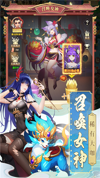 1、游戏内创新的天神玩法是可以3个天神同时出战,有别于传统的伙伴玩法,天神玩法是主角带队,一共4个单位在同一时间并肩作战,3个天神分别以攻击、防御、辅助的重点属性加持,以不同人物上阵出战;2、天神人物涵盖了中外古今、东西方传说神话的人物,3D特效建模,可随游玩者的指针方向随意转动查看。