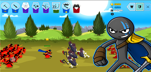 5、当经济足够时,训练火柴人剑客,登上战场进行对战;