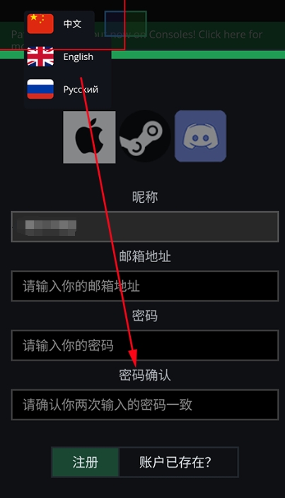 1、初次进入游戏,我们需要注册并且登录一个账号,没有账号的玩家可点击下图所示位置可注册账号