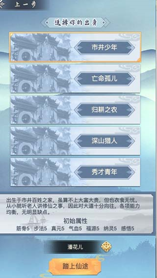 在游戏中一共拥有5个身份可以选择,每个身份都拥有不一样的属性加成