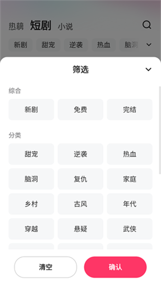2、可以根据自己的喜好筛选短剧的类型。