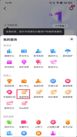 在【全部】分类中选择涨收入的“电商带货”。