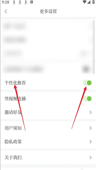在当前界面,把“个性化推荐”功能按钮打开即可
