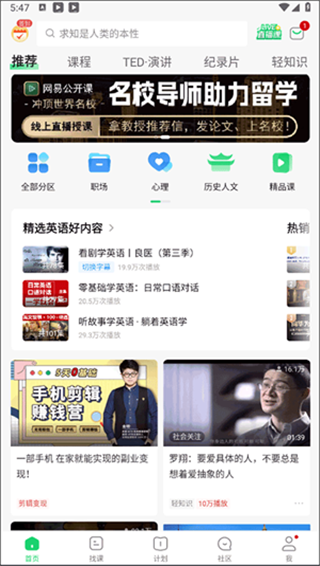 网易公开课app官方版是一款非常受欢迎的学习教育软件,这里拥有海量的学习资料,来自于世界上众多知名学校,如北京大学,清华大学,牛津大学,中国人民大学等,覆盖了众多学习课程,语言文学,人文历史,哲学与宗教,计算机信息,经济管理,基础科学等,用户可以根据自己的情况进行选择。并且这里的视频都是免费的,用户可以自由观看,并且还支持视频离线下载,让用户可以随时随地进行观看学习,不用担心网络的问题而影响学习。